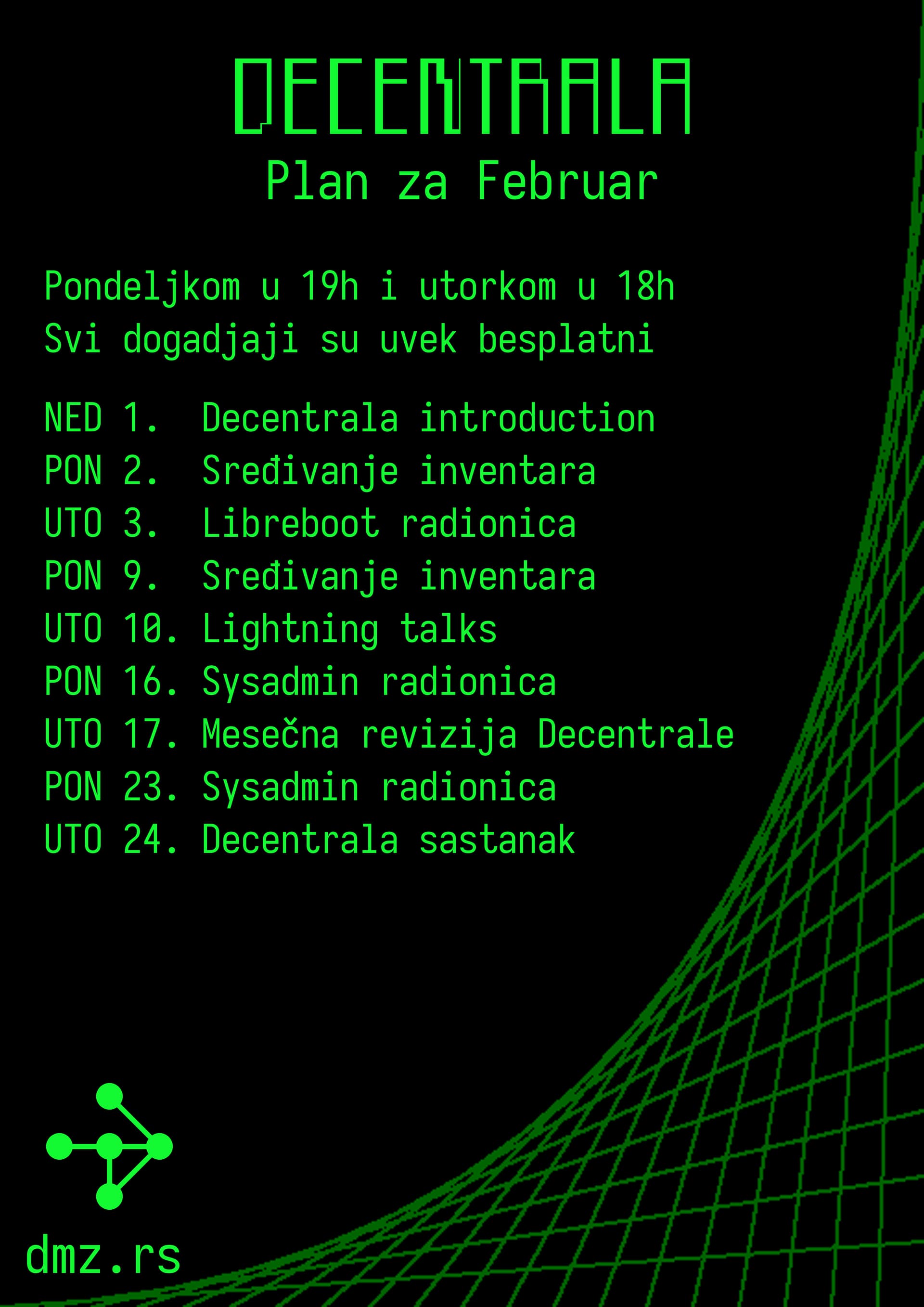 Mozda bi nam trebalo vise od jedne sysadmin radionice, u januaru smo je zamenili sa Decentrala prezentacijom.