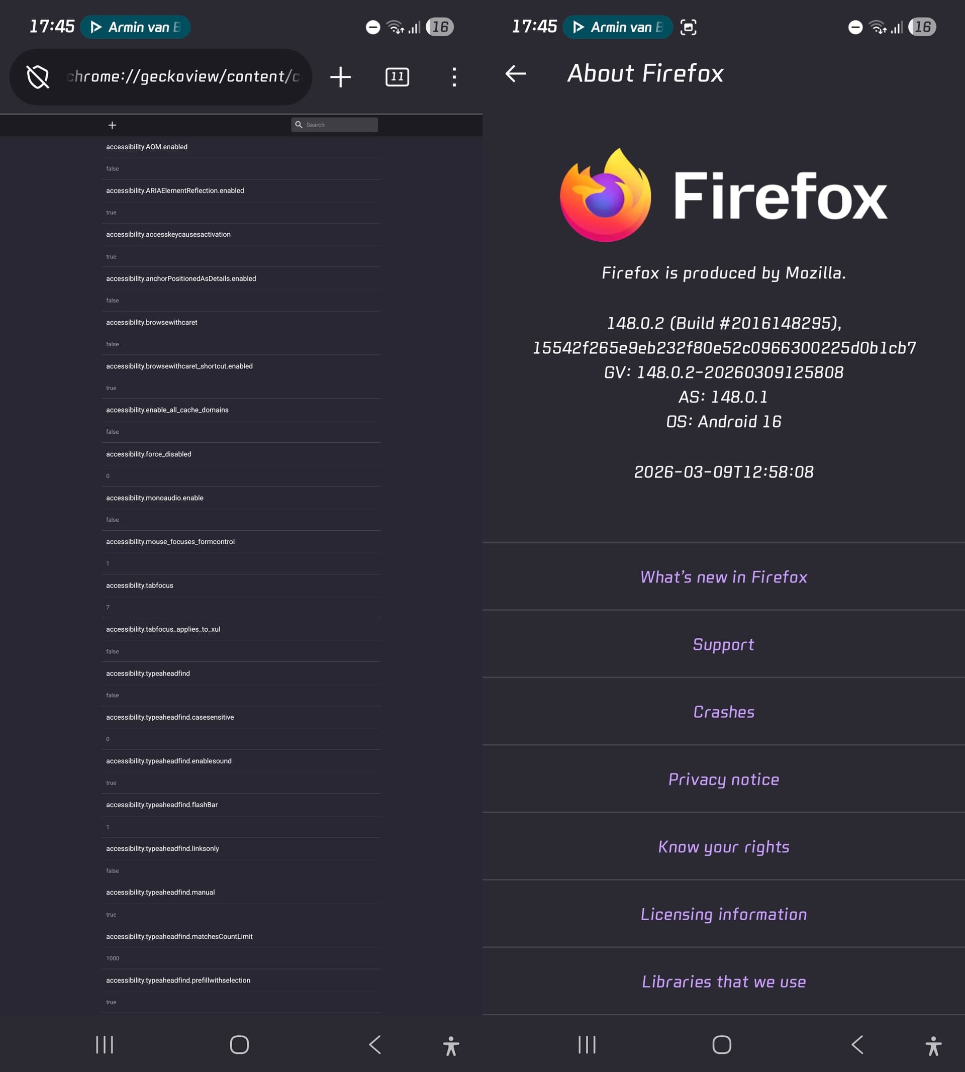 tek sad vidim valjda su makli about:config iz stable ver. android